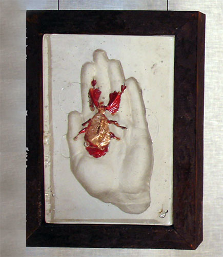 Hot cast glass with copper inclusion