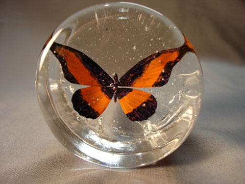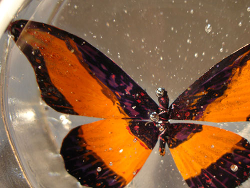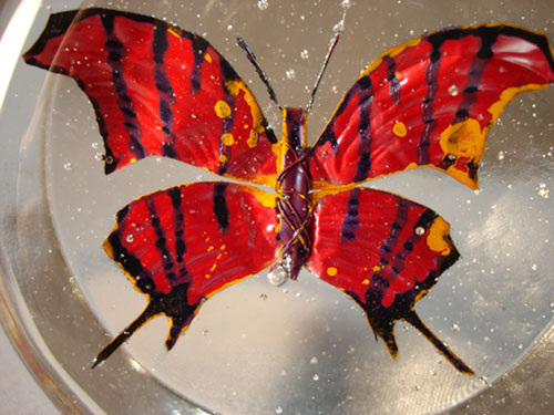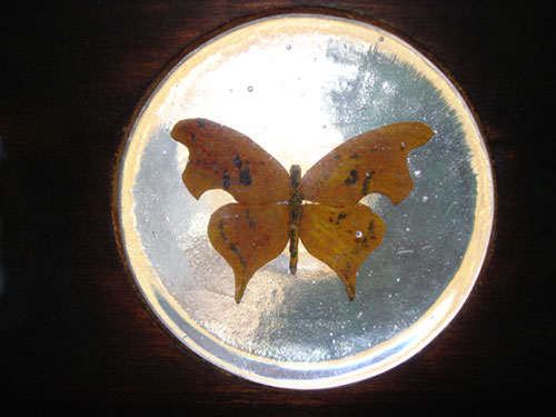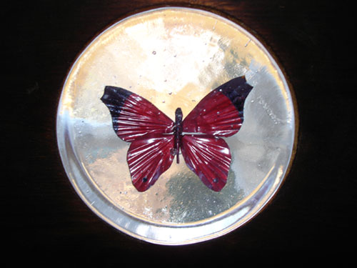 Hot cast glass with copper inclusion